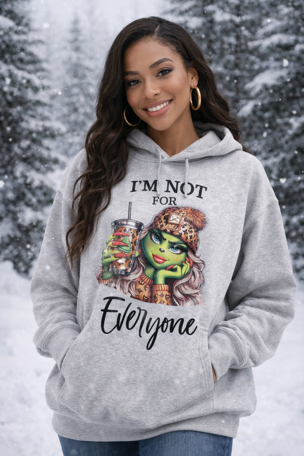 Embrace your inner Grinch this season with unapologetic style. This bold winter tee celebrates the confidence of knowing exactly who you are—and being perfectly fine if not everyone gets it. Dressed in luxury-inspired attitude with a playful edge, it's the perfect statement for anyone who refuses to dim their light for approval. Because let's be real: you're not for everyone, and that's exactly the point. Rock it with pride.